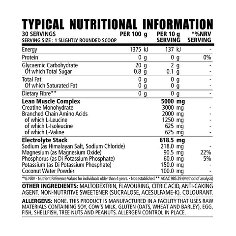 Creatine monohydrate is one of the most researched sports supplements and has been found to promote muscle recovery, strength, agility, and cell hydration. It also supports bone density and enhances memory and cognitive function. NPL ProLifestyle Creatine is sugar-free and contains a unique blend of electrolytes, Himalayan pink salt, and coconut water powder to improve hydration and recovery. It also includes BCAAs in a 2:1:1 ratio to help maintain lean muscle.